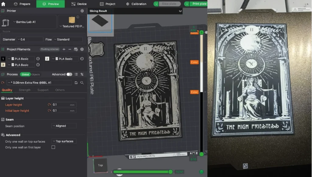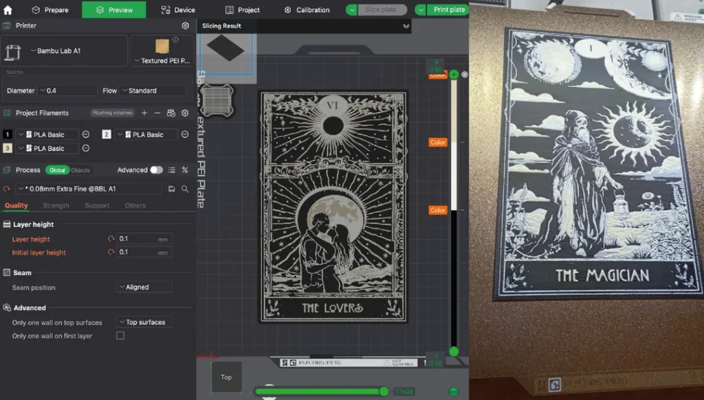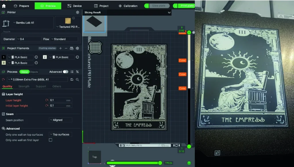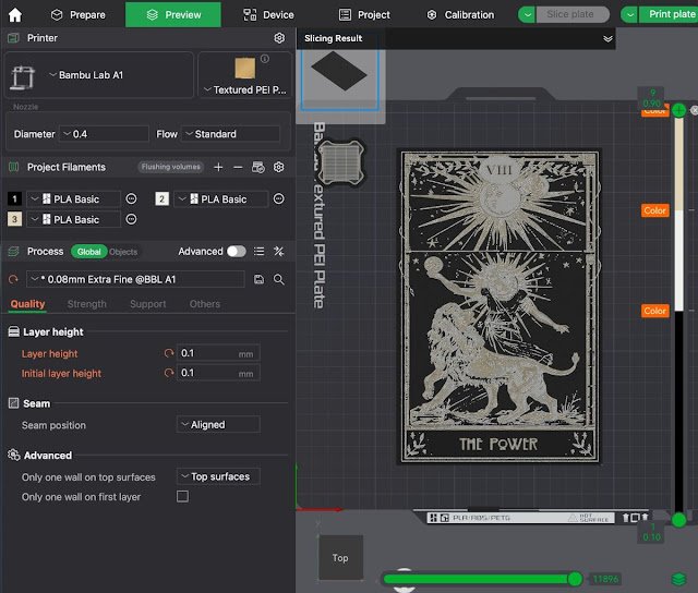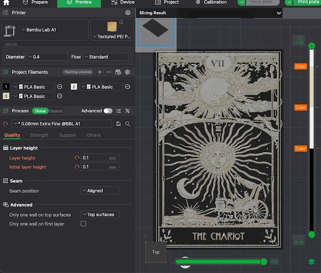 All models are delivered in 3MF format, ensuring smooth compatibility with popular slicers like Bambu Studio and other 3D printing software. Simply load the file, adjust your Hueforge settings, and start printing. The result is a layered, vibrant tarot card that feels both mystical and modern.