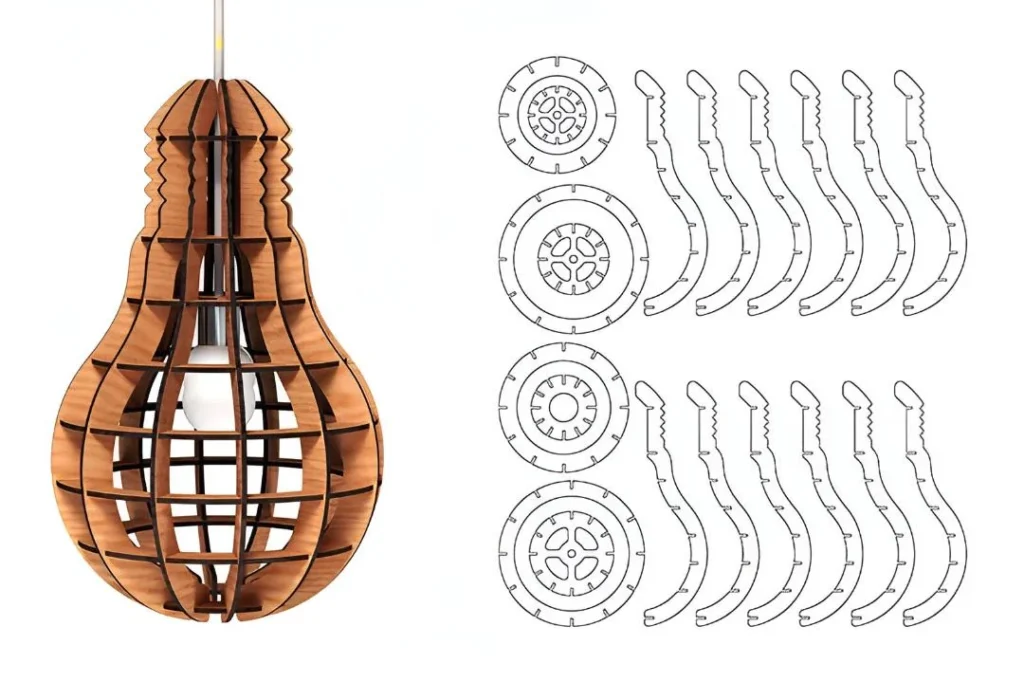 The lamp design is optimized for 3mm wood thickness, making it lightweight yet durable. You can use plywood, MDF, or natural wood sheets depending on your tools and desired finish.